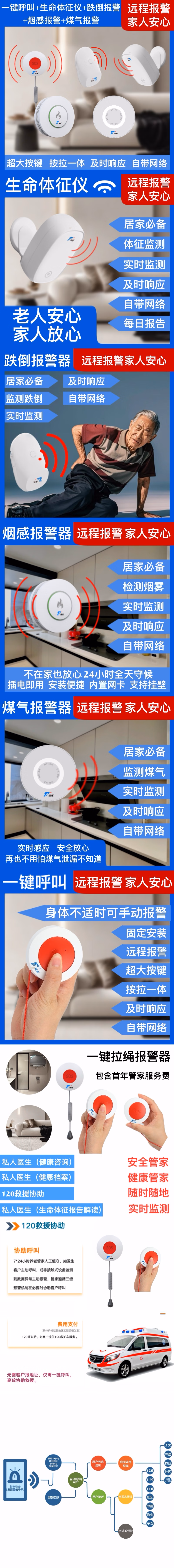 援通一键呼叫+生命体征+跌倒报警+烟感报警+煤气报警+7x24小时人工响应一年
