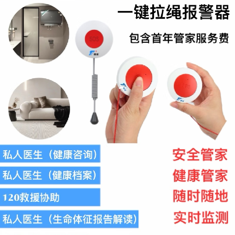 援通一键呼叫+生命体征+跌倒报警+烟感报警+煤气报警+7x24小时人工响应一年